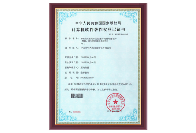 HF4系列軟件著作權(quán)登記證書(shū)