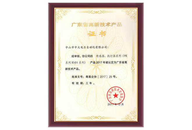 PR系列RMH系列高新技術(shù)產(chǎn)品證書(shū)