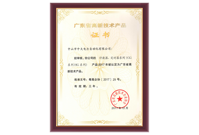 CG系列HG系列高新技術(shù)產(chǎn)品證書(shū)