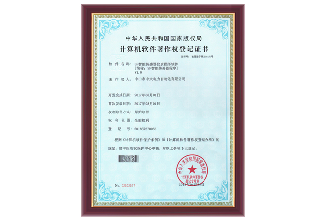 SF智能傳感器儀表程序軟件證書(shū)