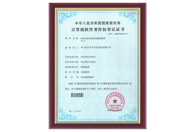 EL801系列軟件著作權(quán)登記證書(shū)